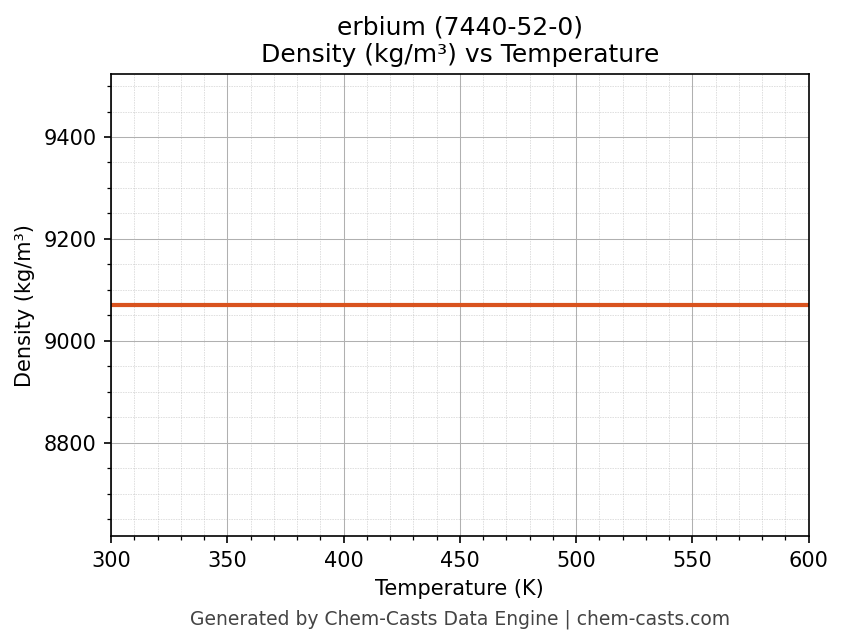- Specific heat capacity (Cp) indicates the amount of energy required to raise the temperature of erbium and is critical for energy balance and heat-exchanger design.
