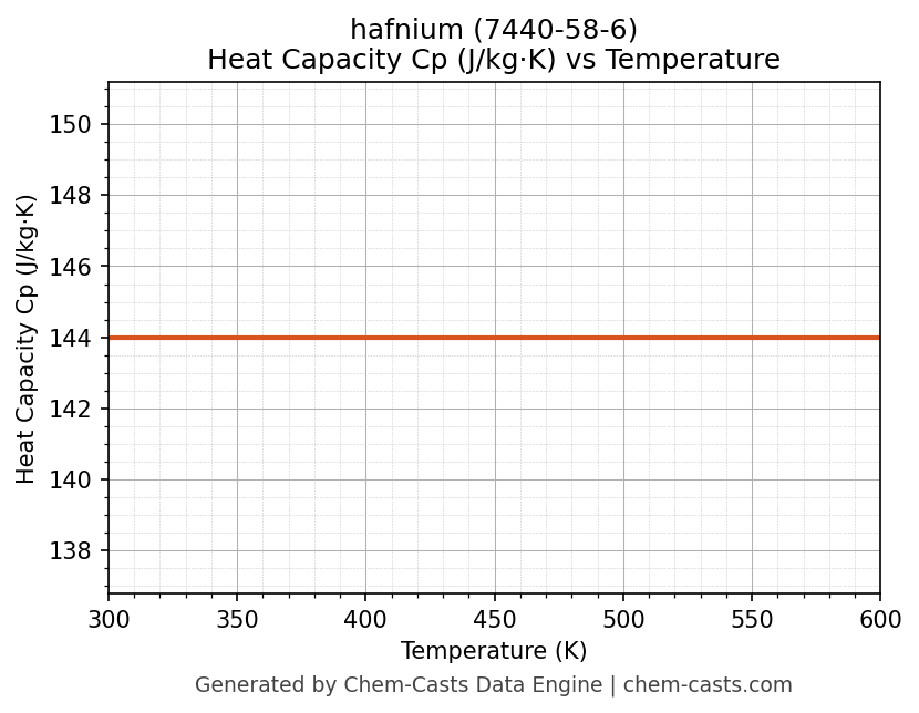 - Specific heat capacity (Cp) indicates the amount of energy required to raise the temperature of hafnium and is critical for energy balance and heat-exchanger design.