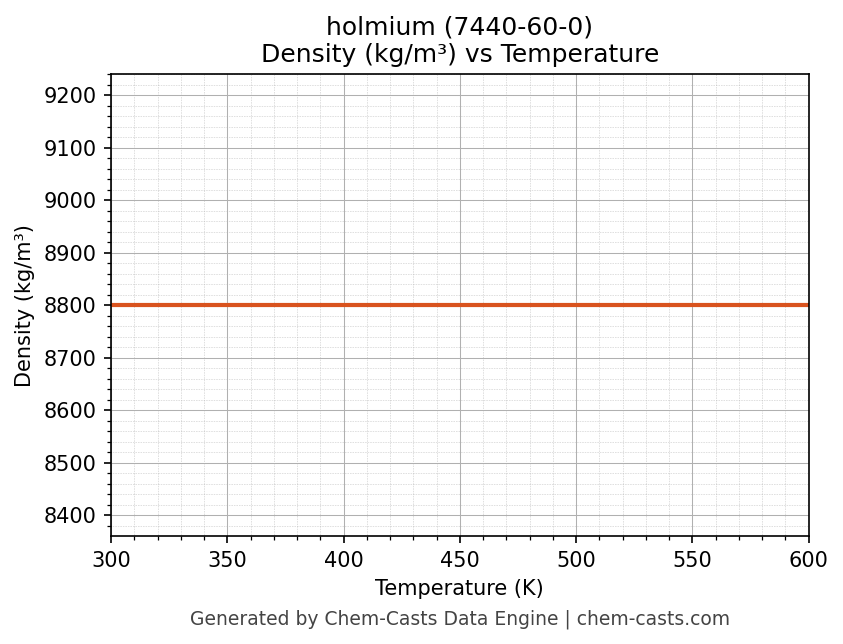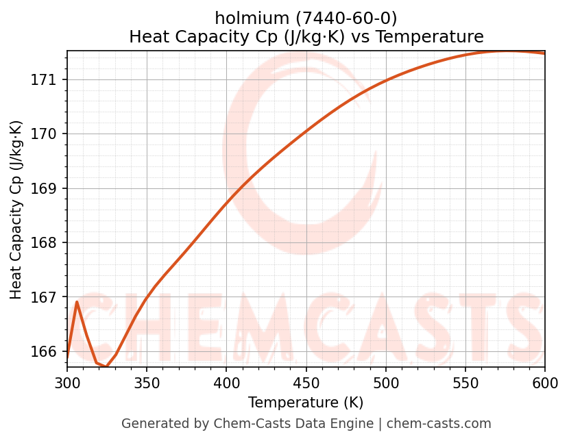 - Specific heat capacity (Cp) indicates the amount of energy required to raise the temperature of holmium and is critical for energy balance and heat-exchanger design.
