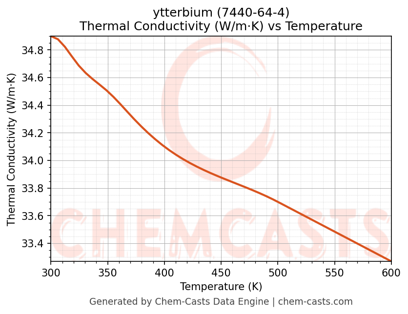 - Specific heat capacity (Cp) indicates the amount of energy required to raise the temperature of ytterbium and is critical for energy balance and heat-exchanger design.