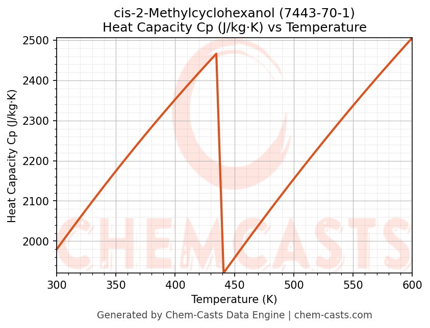 cis-2-Methylcyclohexanol Thermodynamic Properties vs Temperature (CAS 7443-70-1)
