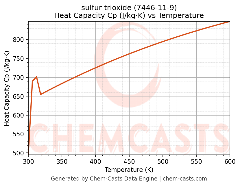 - Specific heat capacity (Cp) indicates the amount of energy required to raise the temperature of sulfur trioxide and is critical for energy balance and heat-exchanger design.