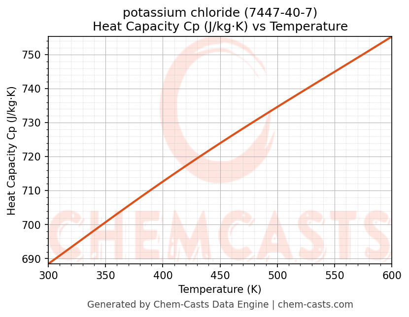 - Specific heat capacity (Cp) indicates the amount of energy required to raise the temperature of potassium chloride and is critical for energy balance and heat-exchanger design.