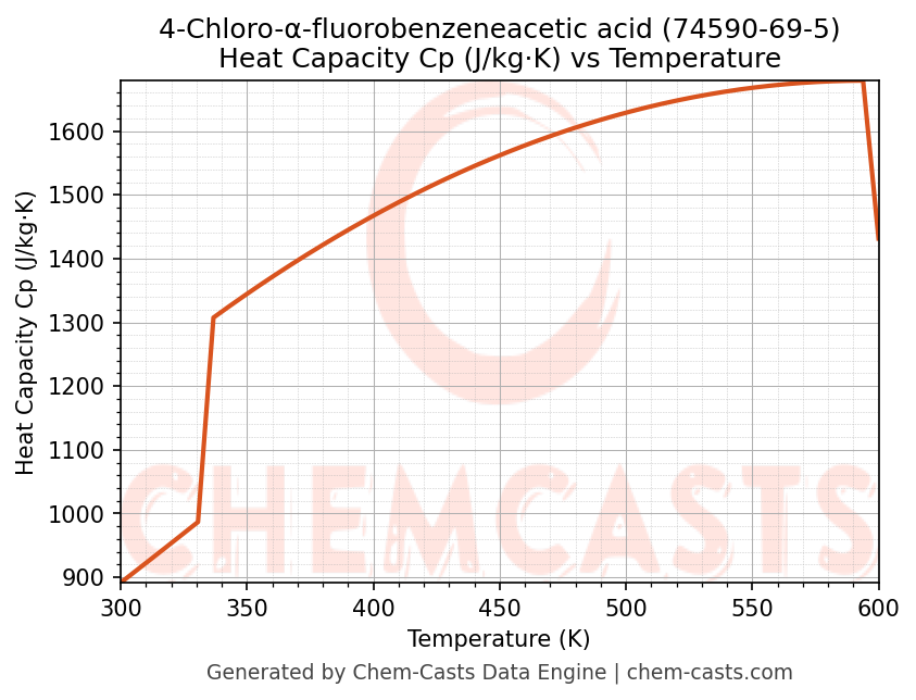 - Specific heat capacity (Cp) indicates the amount of energy required to raise the temperature of 4-Chloro-α-fluorobenzeneacetic acid and is critical for energy balance and heat-exchanger design.