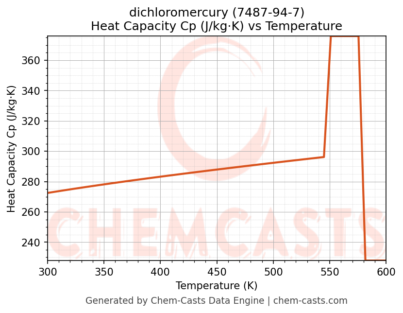 dichloromercury Thermodynamic Properties vs Temperature (CAS 7487-94-7)