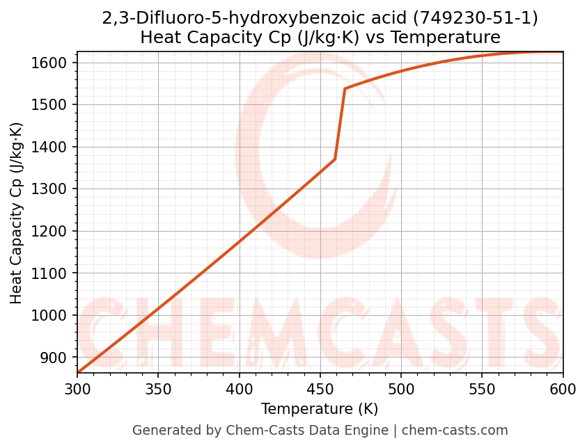 - Specific heat capacity (Cp) indicates the amount of energy required to raise the temperature of 2,3-Difluoro-5-hydroxybenzoic acid and is critical for energy balance and heat-exchanger design.