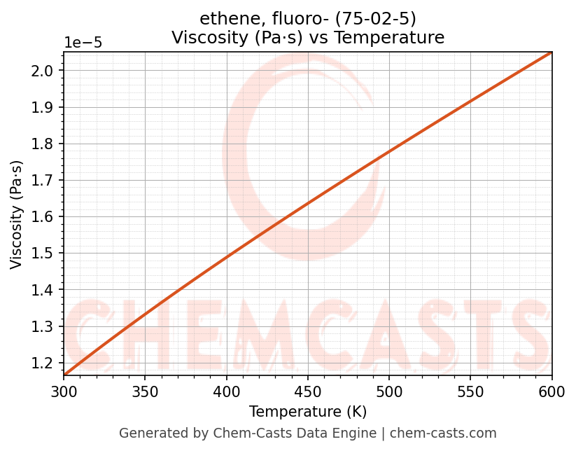 - Specific heat capacity (Cp) indicates the amount of energy required to raise the temperature of ethene, fluoro- and is critical for energy balance and heat-exchanger design.