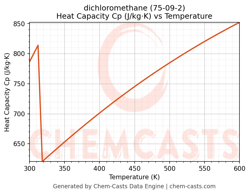 - Specific heat capacity (Cp) indicates the amount of energy required to raise the temperature of dichloromethane and is critical for energy balance and heat-exchanger design.