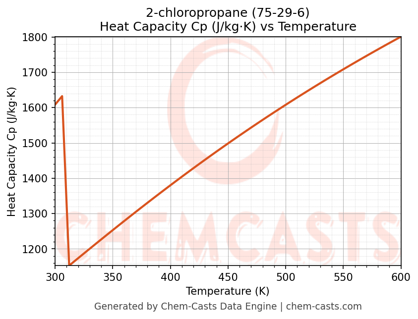- Specific heat capacity (Cp) indicates the amount of energy required to raise the temperature of 2-chloropropane and is critical for energy balance and heat-exchanger design.