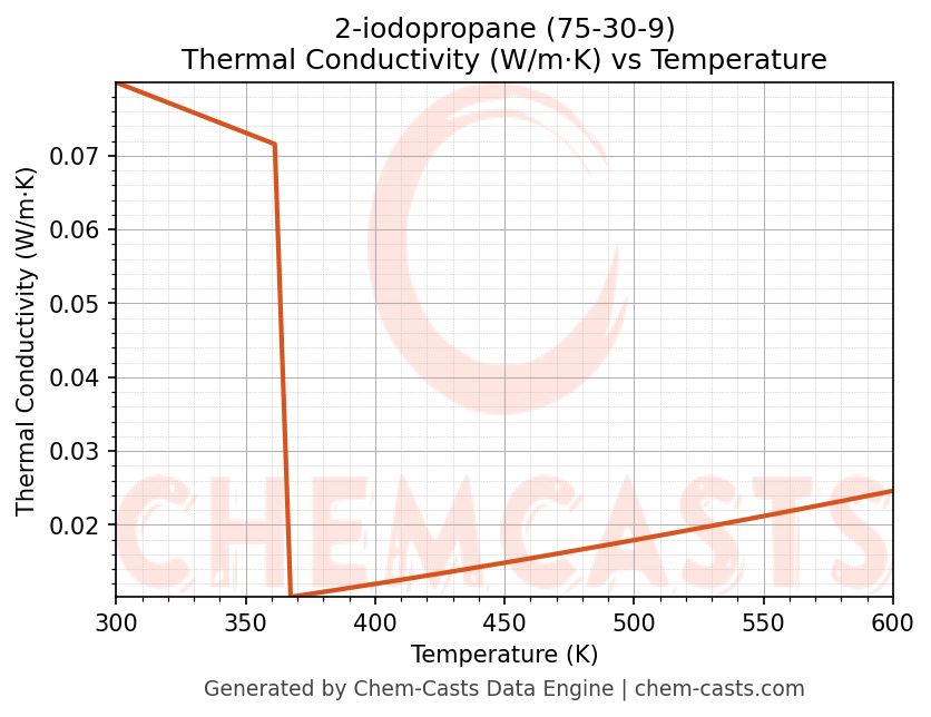 - Specific heat capacity (Cp) indicates the amount of energy required to raise the temperature of 2-iodopropane and is critical for energy balance and heat-exchanger design.