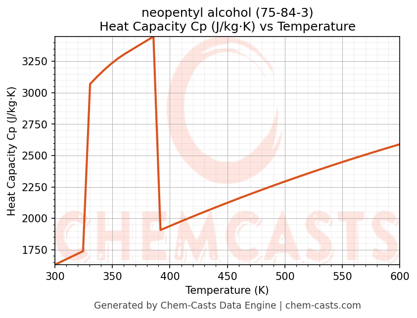 - Specific heat capacity (Cp) indicates the amount of energy required to raise the temperature of neopentyl alcohol and is critical for energy balance and heat-exchanger design.