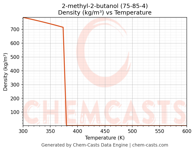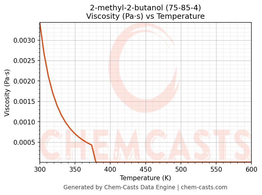 This page presents the temperature-dependent thermodynamic and transport properties of 2-methyl-2-butanol (CAS 75-85-4) calculated at a constant pressure of 1 atm (101325 Pa) over the temperature range 250-500 K.