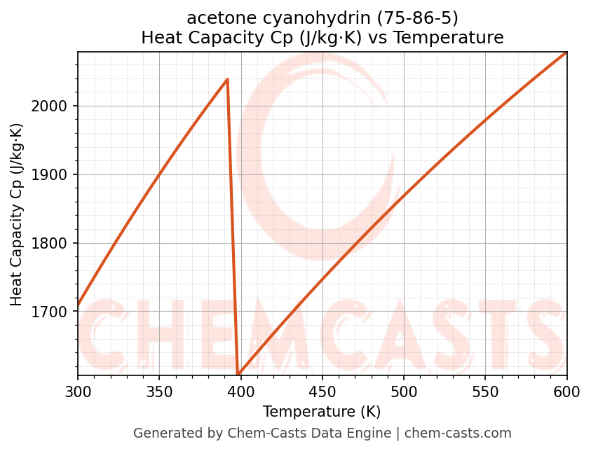 - Specific heat capacity (Cp) indicates the amount of energy required to raise the temperature of acetone cyanohydrin and is critical for energy balance and heat-exchanger design.