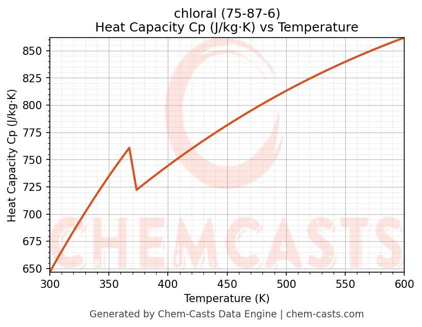 - Specific heat capacity (Cp) indicates the amount of energy required to raise the temperature of chloral and is critical for energy balance and heat-exchanger design.
