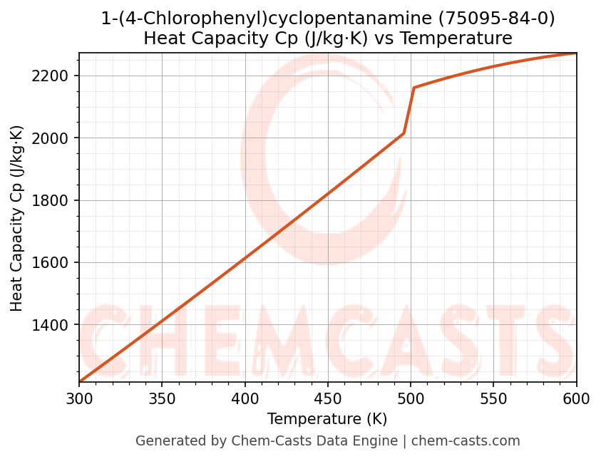 - Specific heat capacity (Cp) indicates the amount of energy required to raise the temperature of 1-(4-Chlorophenyl)cyclopentanamine and is critical for energy balance and heat-exchanger design.