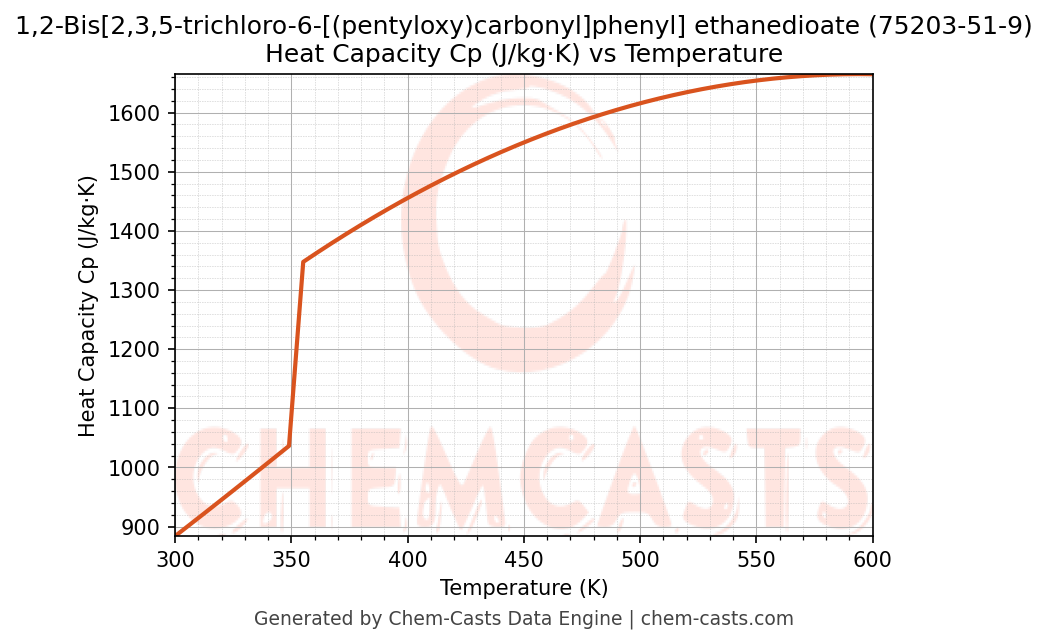![Heat Capacity (Cp) vs Temperature chart for 1,2-Bis[2,3,5-trichloro-6-[(pentyloxy)carbonyl]phenyl] ethanedioate (CAS 75203-51-9)](https://chemcasts-prod.s3.ap-south-1.amazonaws.com/chem_plots_pconst/75203-51-9-cp.png)