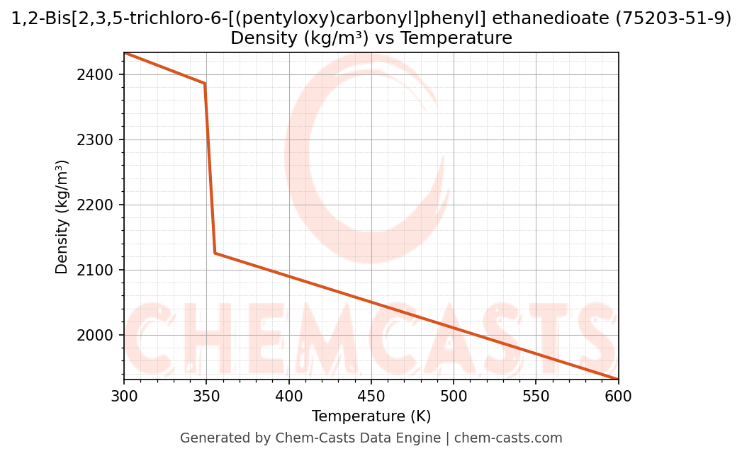 ![Density vs Temperature chart for 1,2-Bis[2,3,5-trichloro-6-[(pentyloxy)carbonyl]phenyl] ethanedioate (CAS 75203-51-9)](https://chemcasts-prod.s3.ap-south-1.amazonaws.com/chem_plots_pconst/75203-51-9-density.png)