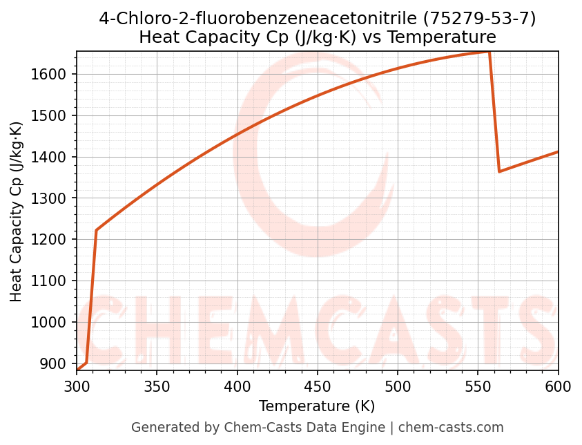 - Specific heat capacity (Cp) indicates the amount of energy required to raise the temperature of 4-Chloro-2-fluorobenzeneacetonitrile and is critical for energy balance and heat-exchanger design.