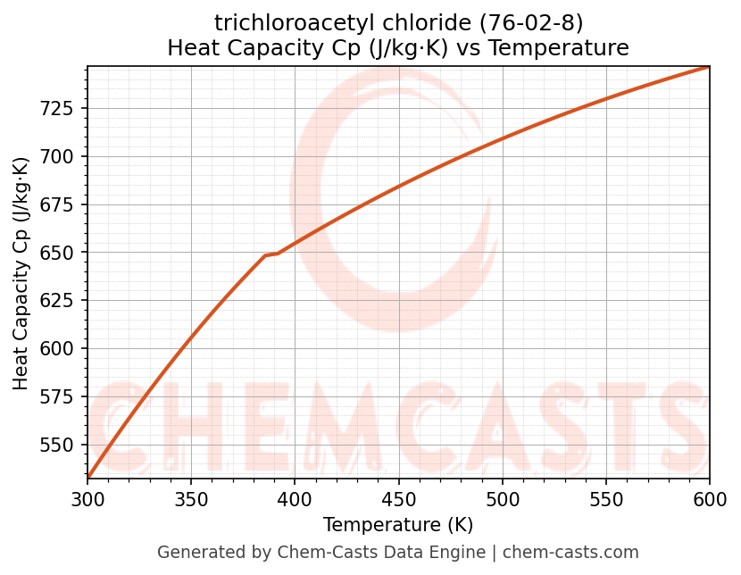 - Specific heat capacity (Cp) indicates the amount of energy required to raise the temperature of trichloroacetyl chloride and is critical for energy balance and heat-exchanger design.