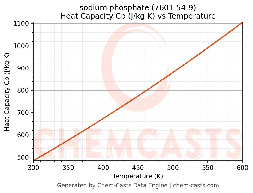- Specific heat capacity (Cp) indicates the amount of energy required to raise the temperature of sodium phosphate and is critical for energy balance and heat-exchanger design.