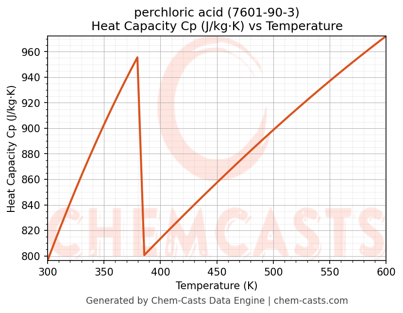 - Specific heat capacity (Cp) indicates the amount of energy required to raise the temperature of perchloric acid and is critical for energy balance and heat-exchanger design.