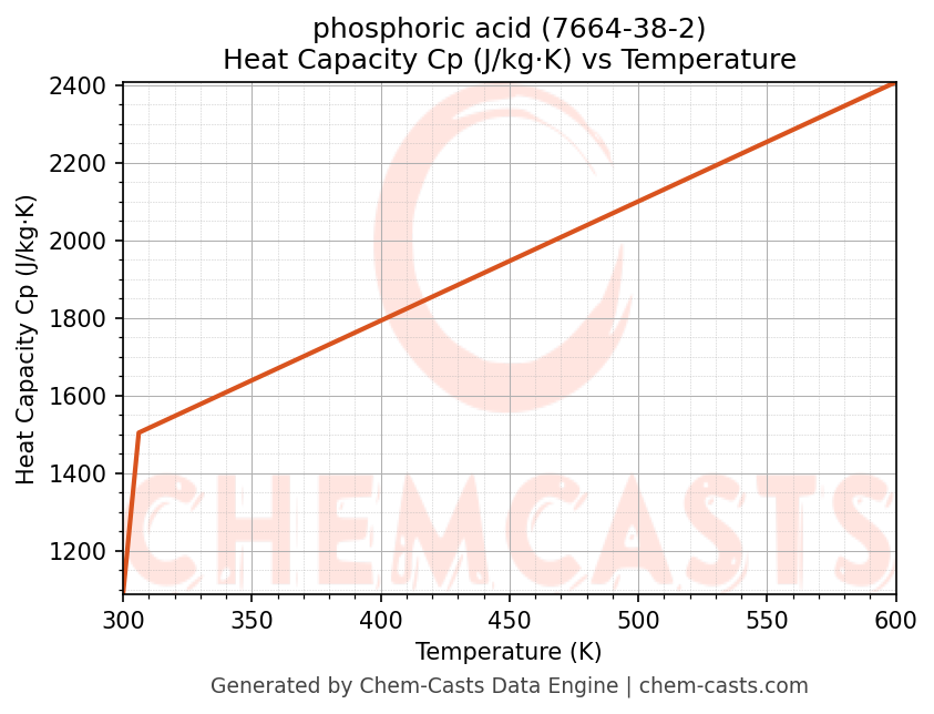 - Specific heat capacity (Cp) indicates the amount of energy required to raise the temperature of phosphoric acid and is critical for energy balance and heat-exchanger design.