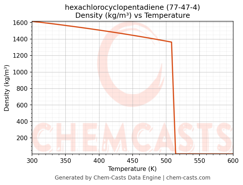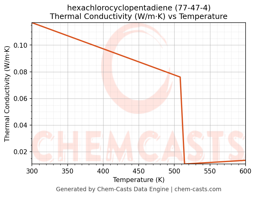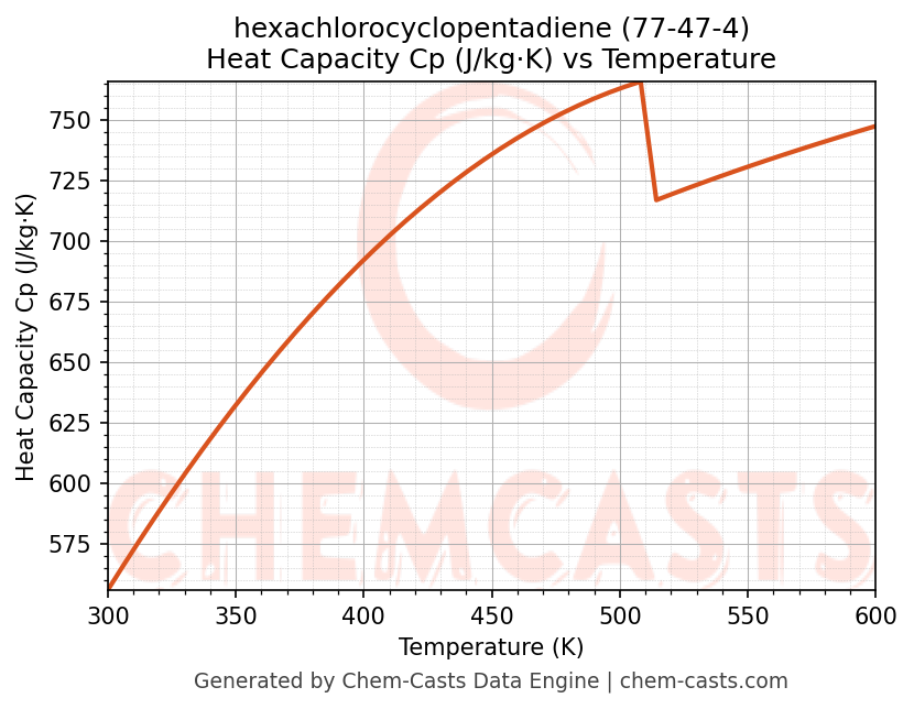 - Specific heat capacity (Cp) indicates the amount of energy required to raise the temperature of hexachlorocyclopentadiene and is critical for energy balance and heat-exchanger design.