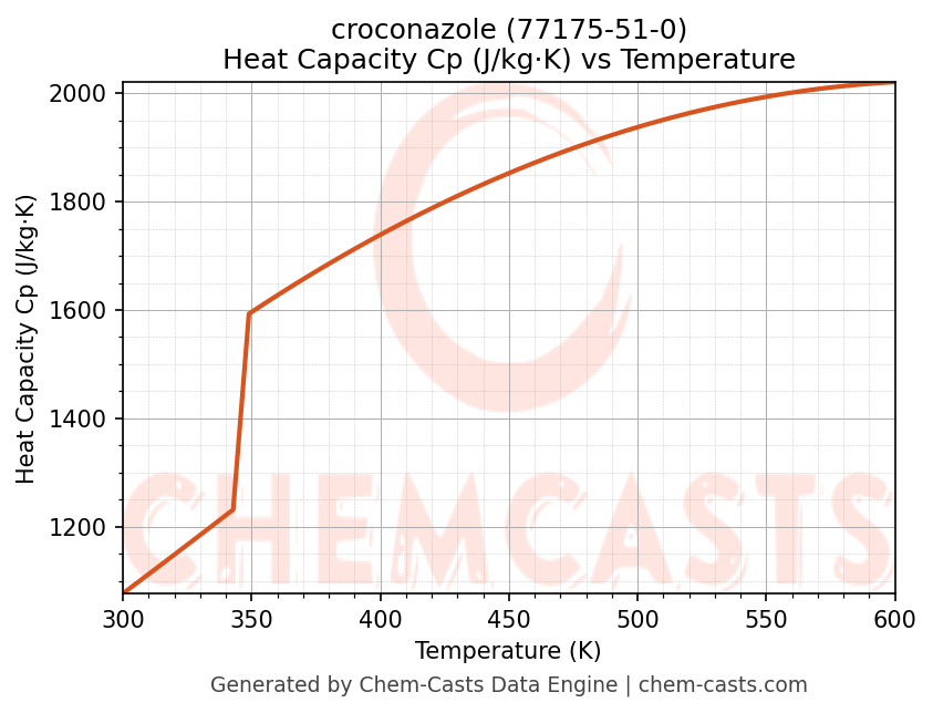 - Specific heat capacity (Cp) indicates the amount of energy required to raise the temperature of croconazole and is critical for energy balance and heat-exchanger design.