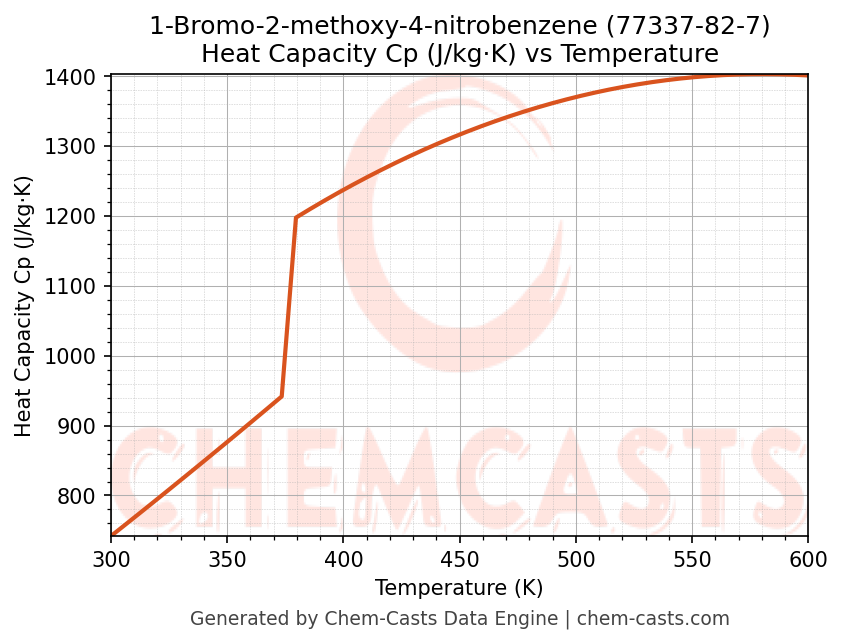 - Specific heat capacity (Cp) indicates the amount of energy required to raise the temperature of 1-Bromo-2-methoxy-4-nitrobenzene and is critical for energy balance and heat-exchanger design.