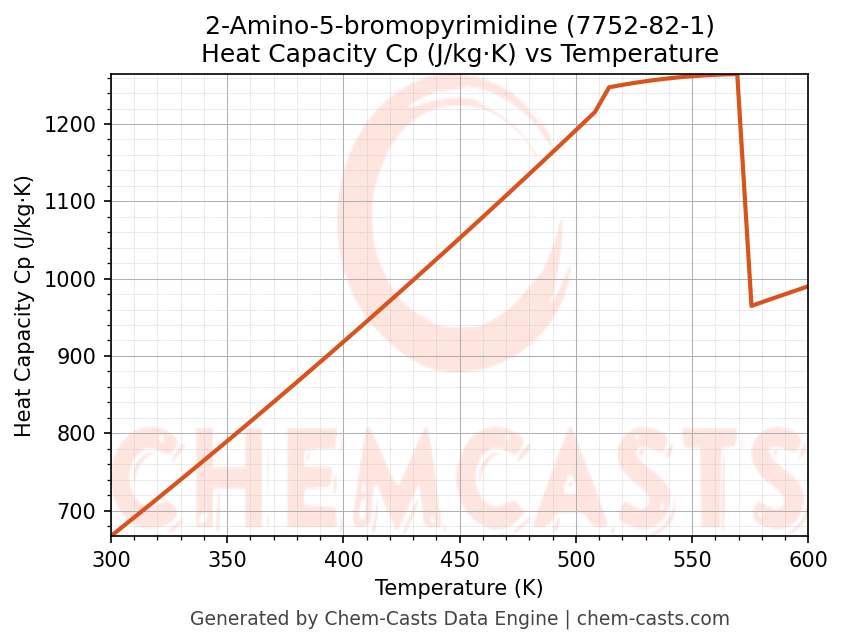 - Specific heat capacity (Cp) indicates the amount of energy required to raise the temperature of 2-Amino-5-bromopyrimidine and is critical for energy balance and heat-exchanger design.
