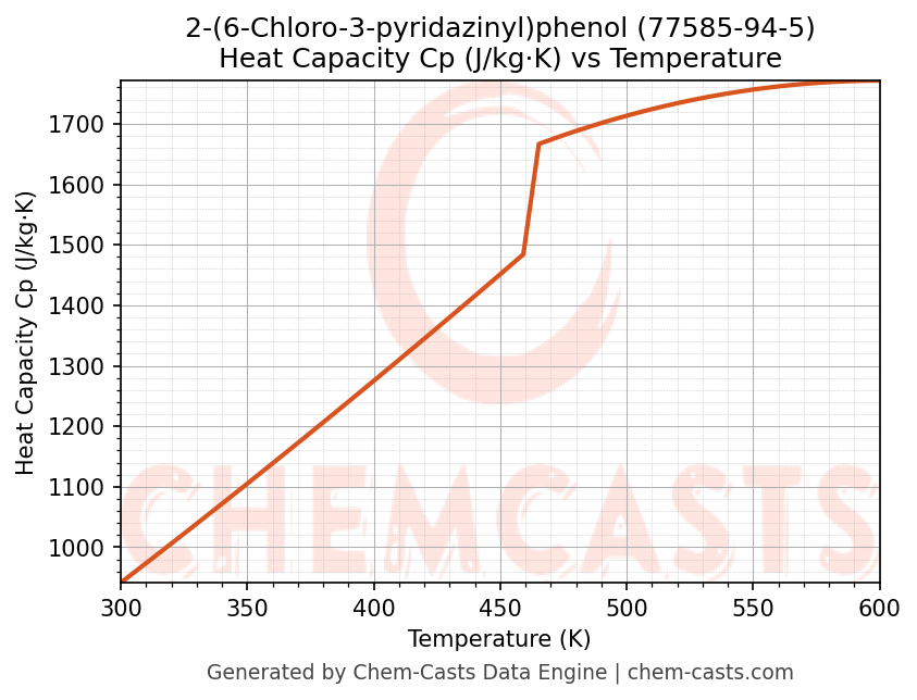 - Specific heat capacity (Cp) indicates the amount of energy required to raise the temperature of 2-(6-Chloro-3-pyridazinyl)phenol and is critical for energy balance and heat-exchanger design.