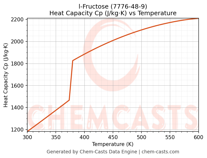- Specific heat capacity (Cp) indicates the amount of energy required to raise the temperature of l-Fructose and is critical for energy balance and heat-exchanger design.