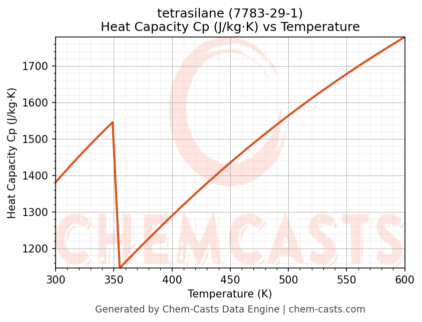 - Specific heat capacity (Cp) indicates the amount of energy required to raise the temperature of tetrasilane and is critical for energy balance and heat-exchanger design.