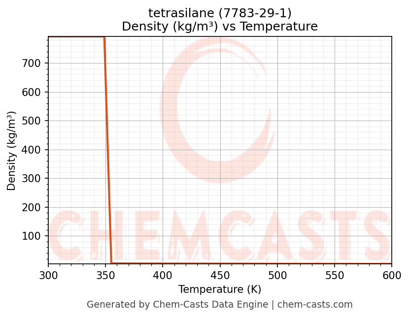 This page presents the temperature-dependent thermodynamic and transport properties of tetrasilane (CAS 7783-29-1) calculated at a constant pressure of 1 atm (101325 Pa) over the temperature range 250-500 K.