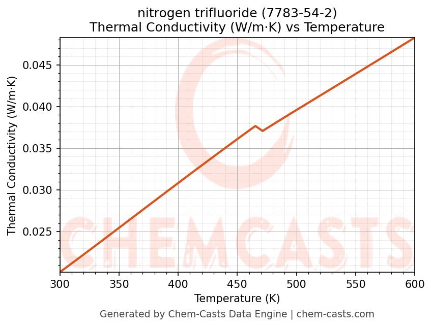 - Specific heat capacity (Cp) indicates the amount of energy required to raise the temperature of nitrogen trifluoride and is critical for energy balance and heat-exchanger design.