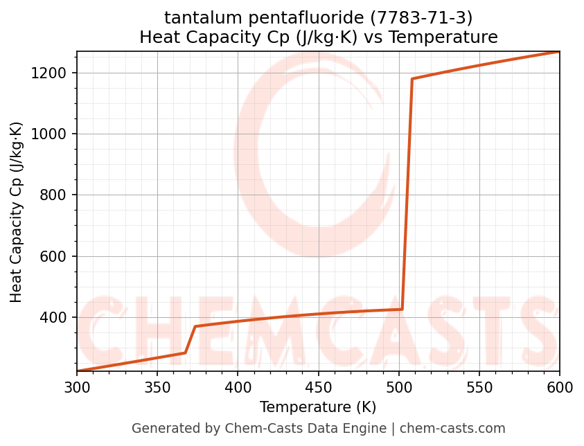- Specific heat capacity (Cp) indicates the amount of energy required to raise the temperature of tantalum pentafluoride and is critical for energy balance and heat-exchanger design.
