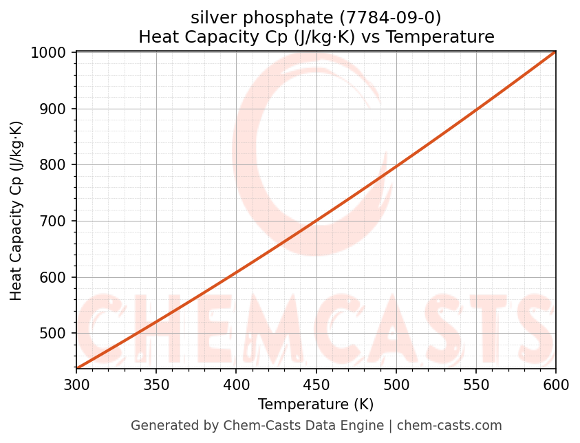 - Specific heat capacity (Cp) indicates the amount of energy required to raise the temperature of silver phosphate and is critical for energy balance and heat-exchanger design.