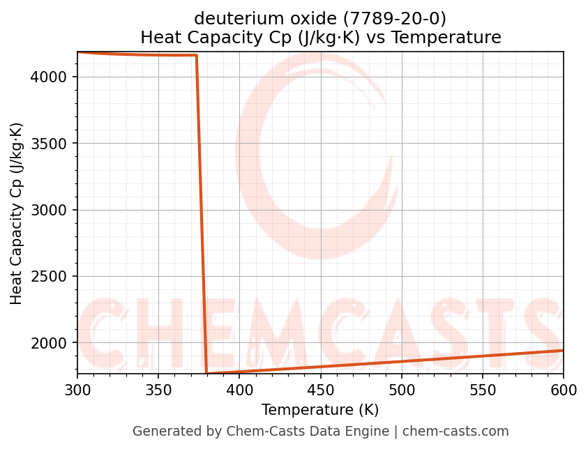 - Specific heat capacity (Cp) indicates the amount of energy required to raise the temperature of deuterium oxide and is critical for energy balance and heat-exchanger design.