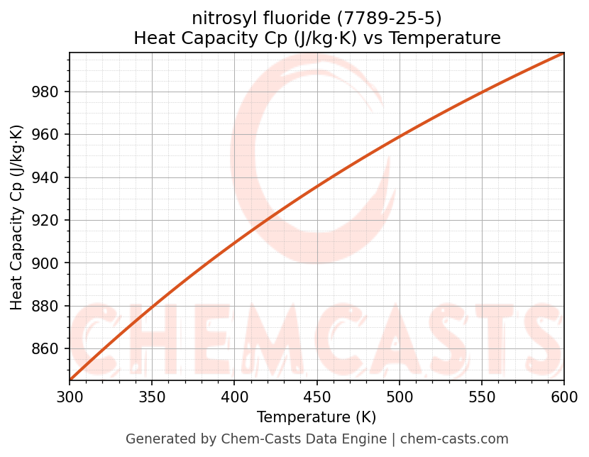 - Specific heat capacity (Cp) indicates the amount of energy required to raise the temperature of nitrosyl fluoride and is critical for energy balance and heat-exchanger design.