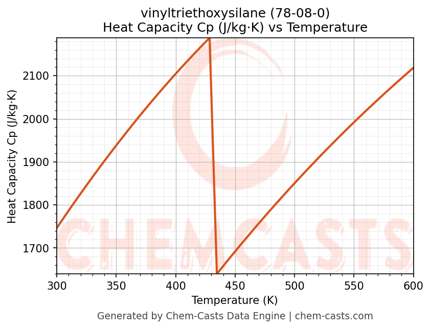 - Specific heat capacity (Cp) indicates the amount of energy required to raise the temperature of vinyltriethoxysilane and is critical for energy balance and heat-exchanger design.