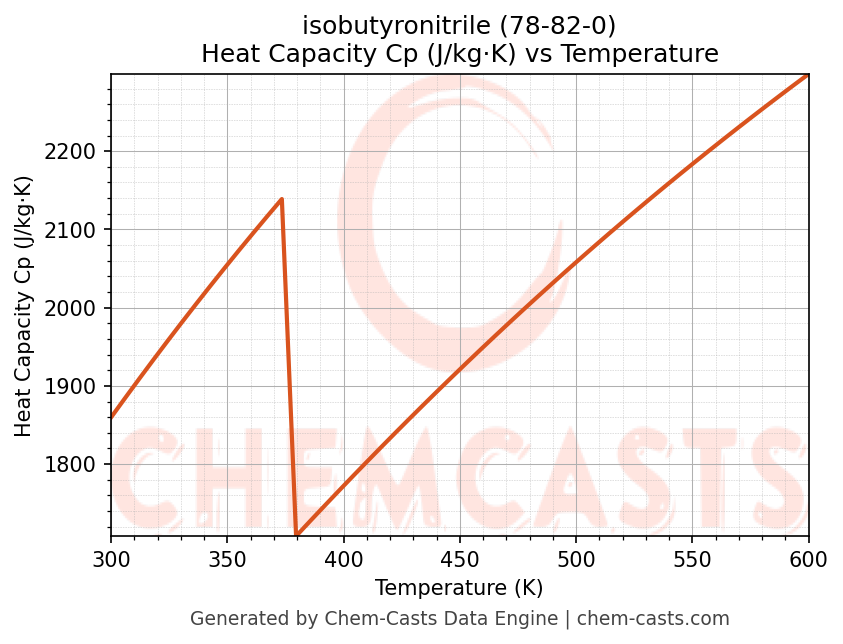- Specific heat capacity (Cp) indicates the amount of energy required to raise the temperature of isobutyronitrile and is critical for energy balance and heat-exchanger design.
