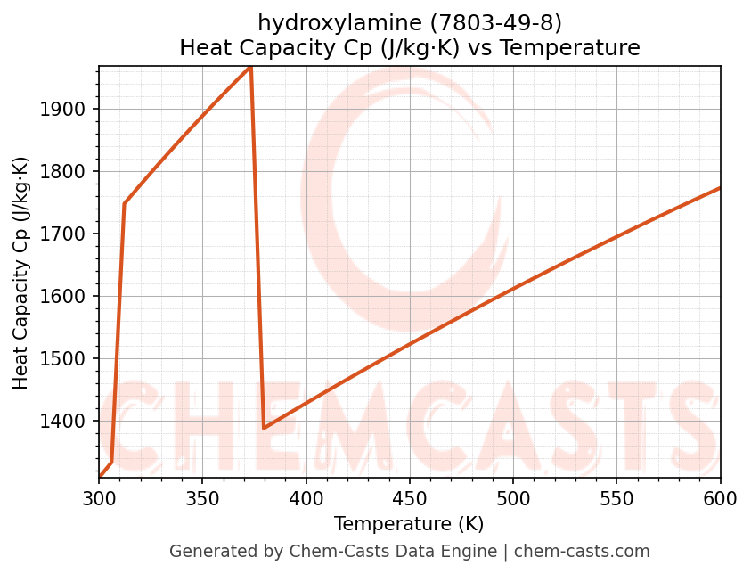 - Specific heat capacity (Cp) indicates the amount of energy required to raise the temperature of hydroxylamine and is critical for energy balance and heat-exchanger design.
