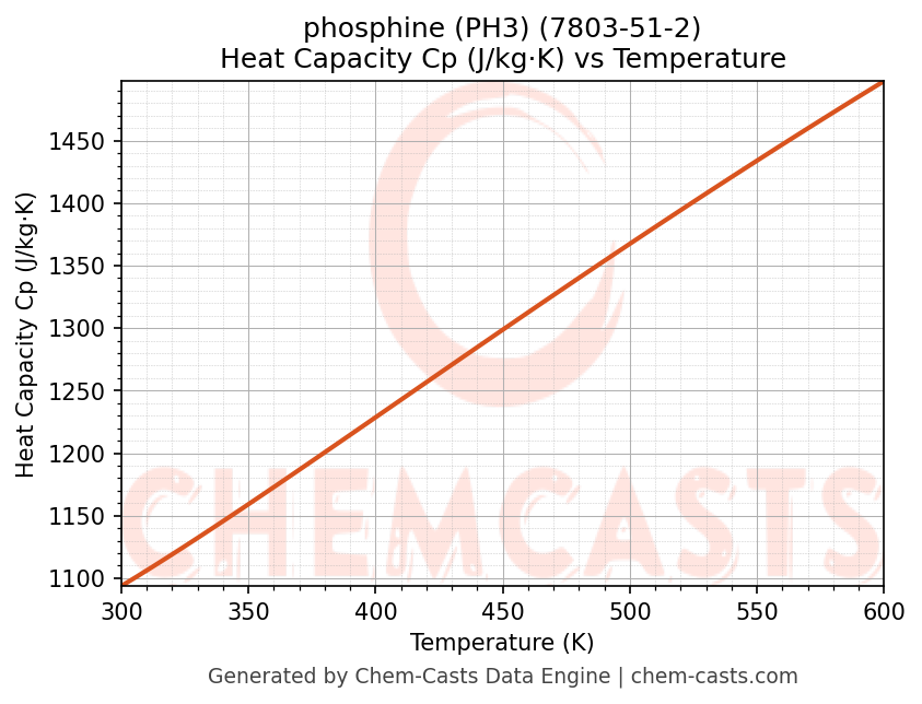 - Specific heat capacity (Cp) indicates the amount of energy required to raise the temperature of phosphine (PH3) and is critical for energy balance and heat-exchanger design.