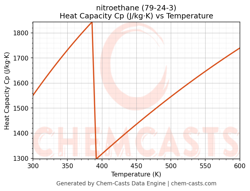 - Specific heat capacity (Cp) indicates the amount of energy required to raise the temperature of nitroethane and is critical for energy balance and heat-exchanger design.