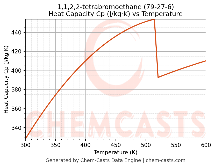 - Specific heat capacity (Cp) indicates the amount of energy required to raise the temperature of 1,1,2,2-tetrabromoethane and is critical for energy balance and heat-exchanger design.