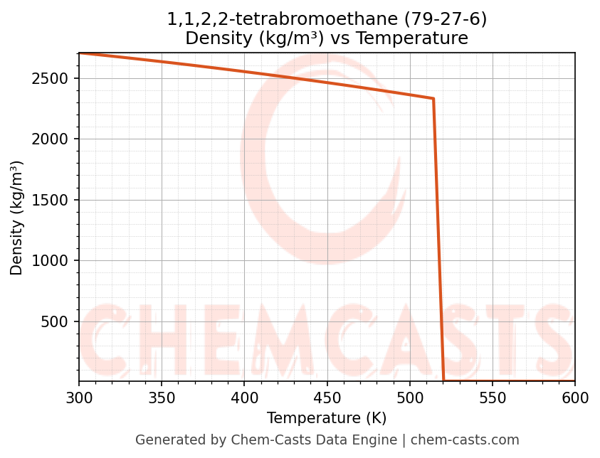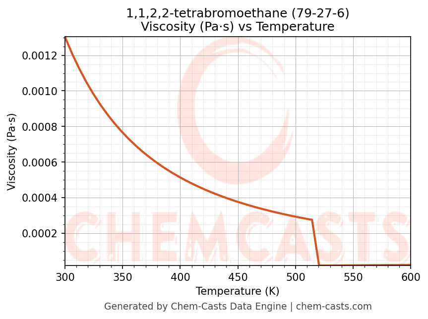 This page presents the temperature-dependent thermodynamic and transport properties of 1,1,2,2-tetrabromoethane (CAS 79-27-6) calculated at a constant pressure of 1 atm (101325 Pa) over the temperature range 250-500 K.