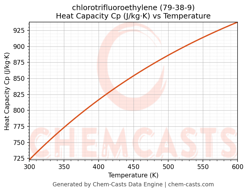 - Specific heat capacity (Cp) indicates the amount of energy required to raise the temperature of chlorotrifluoroethylene and is critical for energy balance and heat-exchanger design.