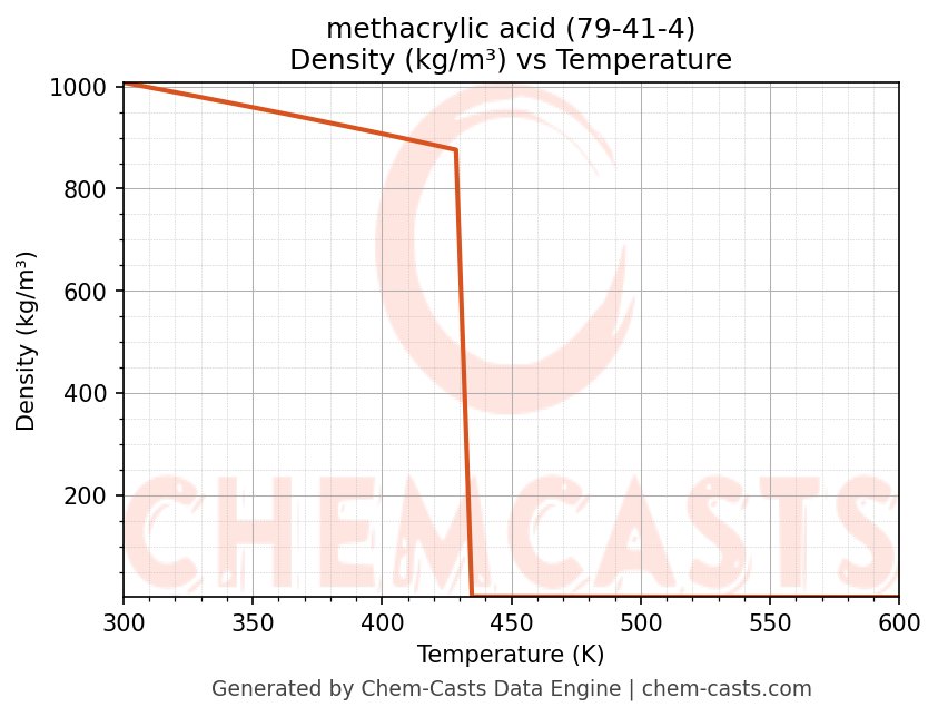 - Specific heat capacity (Cp) indicates the amount of energy required to raise the temperature of methacrylic acid and is critical for energy balance and heat-exchanger design.
