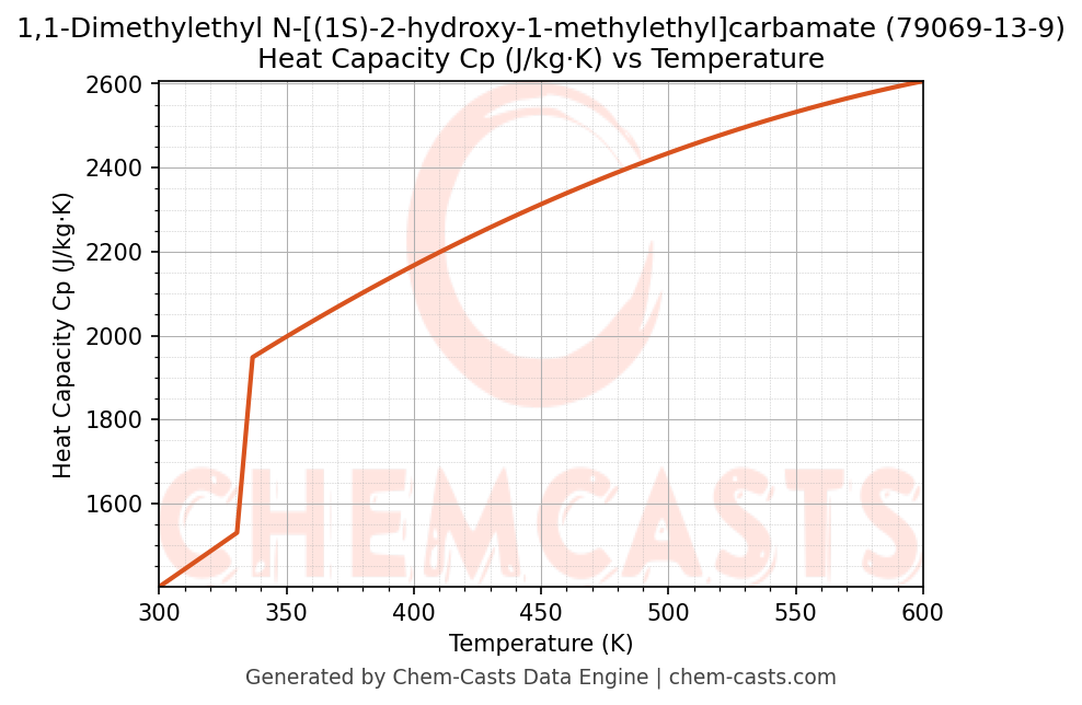 ![Heat Capacity (Cp) vs Temperature chart for 1,1-Dimethylethyl N-[(1S)-2-hydroxy-1-methylethyl]carbamate (CAS 79069-13-9)](https://chemcasts-prod.s3.ap-south-1.amazonaws.com/chem_plots_pconst/79069-13-9-cp.png)