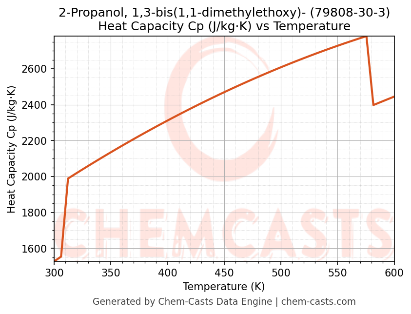 - Specific heat capacity (Cp) indicates the amount of energy required to raise the temperature of 2-Propanol, 1,3-bis(1,1-dimethylethoxy)- and is critical for energy balance and heat-exchanger design.